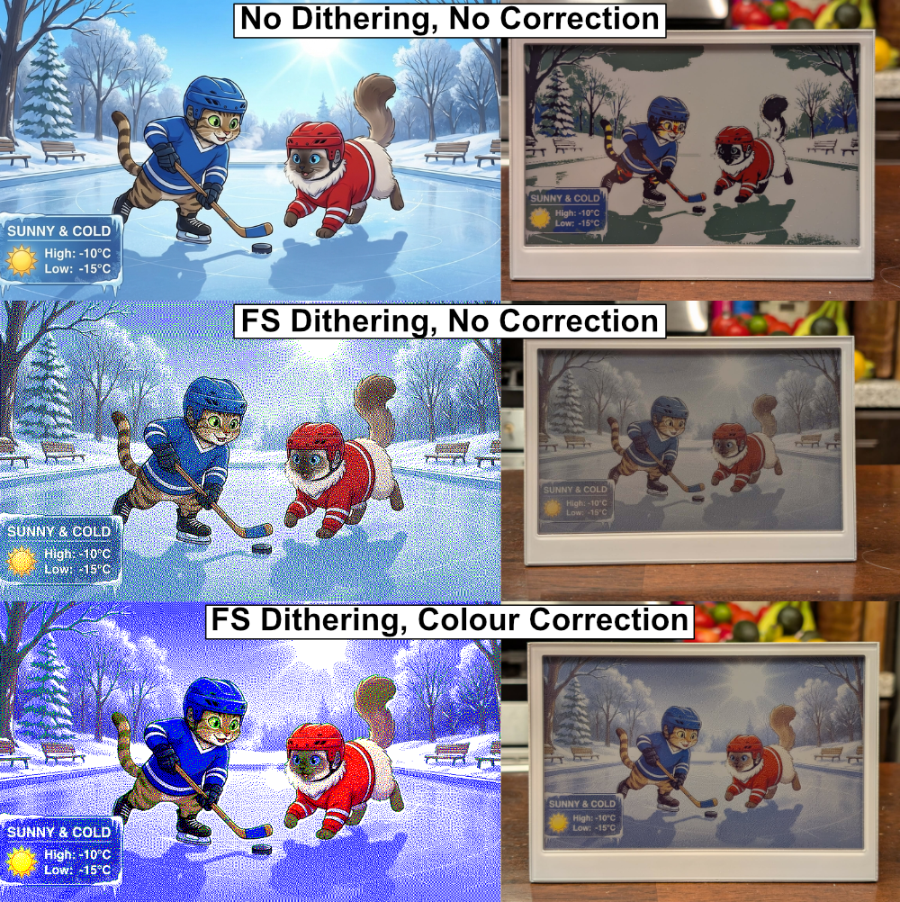 Aside from the parts that are obviously on Google servers, this is all integrated in [Jesse]’s Home Assistant server. That server stores the generated image until the ESP32 fetches it. He’s using a reTerminal board from SeedStudio that includes an ESP32-S3 and a Spectrum6 coloor e-ink display. That display leaves something to be desired in coloration, so on top of dithering the image to match the palette of the display, he’s also got a bit of color-correction in place to make it really pop.