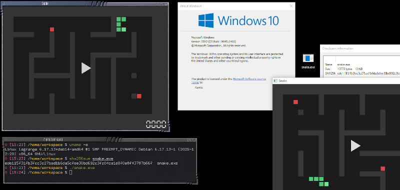 We’ve been aware of projects like Cosmopolitan that allow you to crank out a single executable that will run on different operating systems. [Kamila] noticed that the idea was sound, but that the executables were large and there were some limitations. So she produced a 13K file that will run under Windows, Linux, or even in a Web browser. The program itself is a simple snake game.