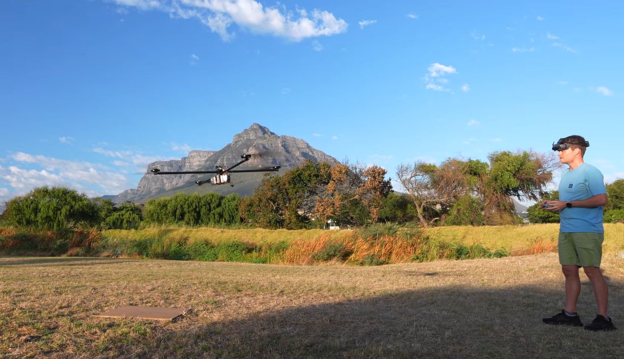 Crucial is that power usage goes up drastically when you increase the RPM of the propellers, ergo massive 40″ propellers were picked to minimize the required RPM to achieve sufficient lift, necessitating a very large, but lightweight frame.