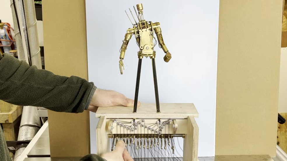 [Oliver Pett] loves creating automata; pieces of art whose physicality and motion come together to deliver something unique. [Oliver] also has a mission, and that mission is to complete the most complex automata he has ever attempted: The Archer. This automaton is a fully articulated figure designed to draw arrows from a quiver, nock them in a bow, draw back, and fire — all with recognizable technique and believable motions. Shoot for the moon, we say!