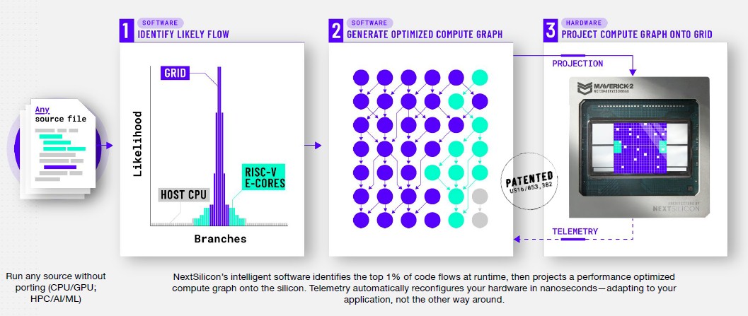 The strategy here appears to be somewhat of a mixture between VLIW, FPGAs and Sony’s Cell architecture, with a dedicated compiler that determines the best mapping of a particular calculation across the compute elements inside the chip. Naturally, the exact details about the internals are a closely held secret by NextSilicon and its partners (like Sandia), so we basically have only the public claims and PR material to go by.