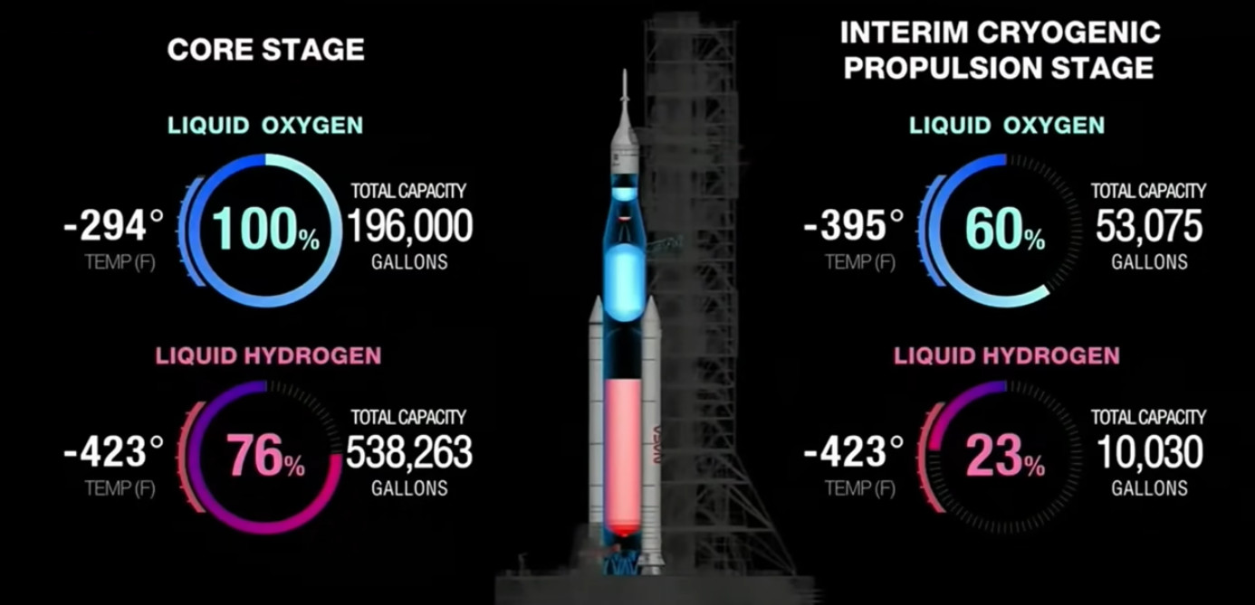 A real-time graphic displayed propellant load status during the Wet Dress Rehearsal live stream.