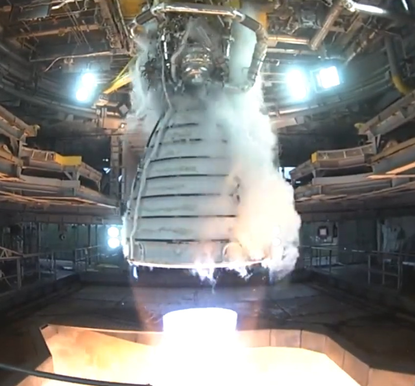 An RS-25 engine during a test run.