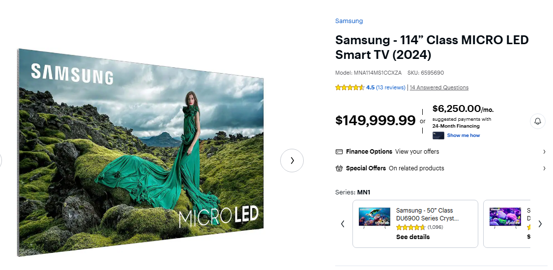 If you’re not feeling so flush, you can get a lesser “Micro RGB” TV if you like, which combines a fancy RGB matrix backlight with LCD technology as discussed above. Even then, a Samsung R95 television with Micro RGB technology will set you back $29,999.99 at Best Buy, or you can purchase it on a payment plan for $1,250 a month. In fact, with the launch of these comparatively affordable TVs, Samsung has gone somewhat quiet on its Micro LED line since initially crowing about it in 2024. Still, whichever way you go, these fancy TVs don’t come cheap.