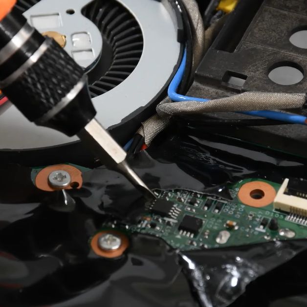 While refurbishing this laptop for a customer, he thought it’d be easy: the guide he found said he just had to disassemble the laptop to gain access to this chip, then short out its reset pin at the right time to make it drop offline and keep it shorted. Important here is that you do not short it when you are still booting the system, or it won’t boot. This makes for some interesting prodding of tiny pins with a metal tool.