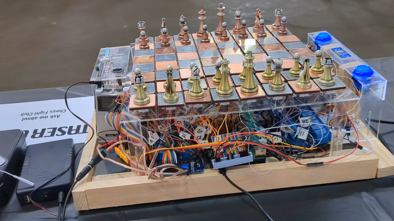 This project took [Everything is Hacked] over a year to get into a working condition, including having to rebuild the entire project twice after mishaps with baggage handling at an airline. But he was able to demo the board to the Open Sauce tech festival and even took it to his local park to play chess with the local hustlers. Unfortunately, he reports that he spent more time reworking and rewiring his board over that year than he did improving his chess game, so unfortunately he still hasn’t been able to win any of his money back yet. Perhaps combining this project with a chess-playing robot would help.