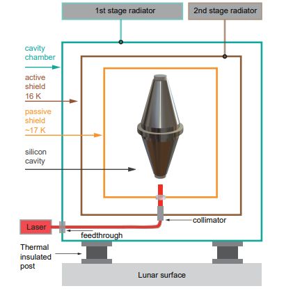 Phase-coherent lasers are crucial for many precision tasks, including timekeeping. Here on Earth the most stable optical oscillators are used in e.g. atomic clocks and many ultra-precise scientific measurements, such as gravitational wave detection. Since these optical oscillators use cryogenic silicon cavities, it’s completely logical to take this principle and build a cryogenic silicon cavity laser on the Moon.