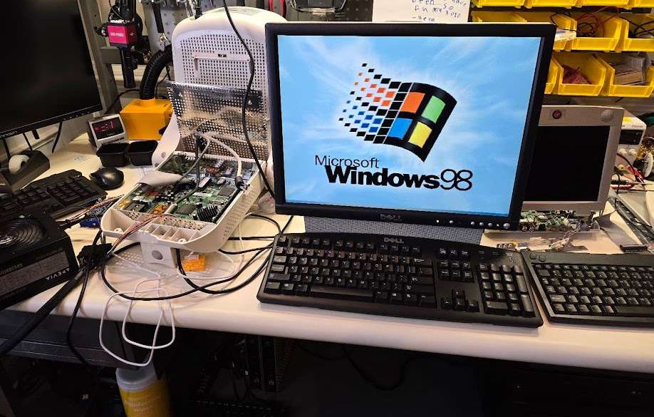 From this you can then boot Windows 98 from an IDE drive by pretending that it’s an ATAPI IDE device to dodge a limitation on IDE devices. The system’s hardware isn’t really going to make it into a blazing fast retro computer. It only has a 266 MHz Geode GX1 CPU and supports up to 256 MB of SDRAM. The IA-2 is also limited to 800×600, which required the use of an external monitor (as seen above) hooked up to the internal VGA port to set the proper resolution in the OS.
