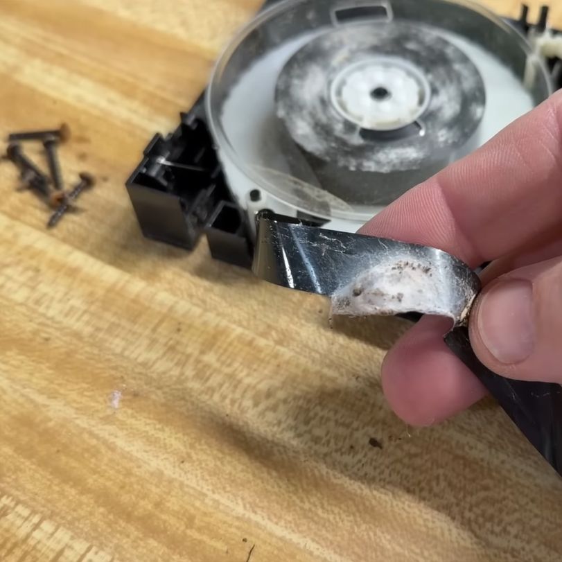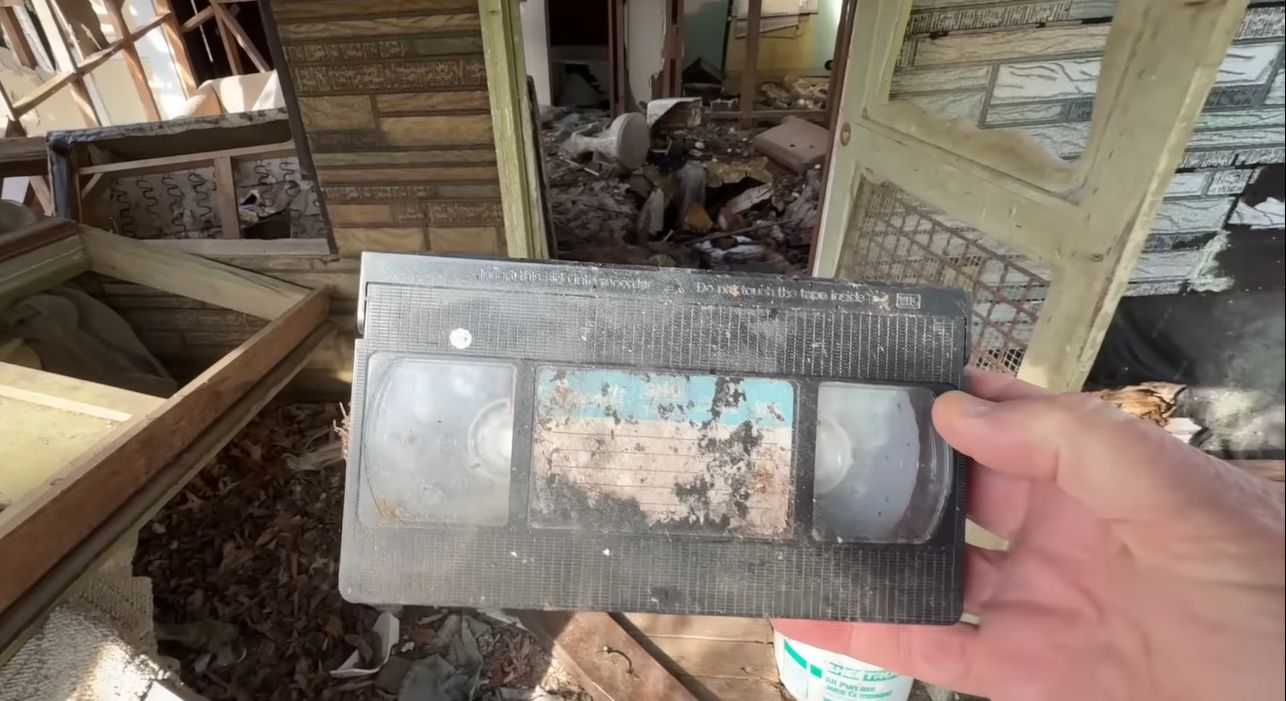Normally VHS tapes are kept safely in a little sleeve or box in a dry, cool place, similar to CDs and DVDs. These particular items had however been left for at least a decade out in the open amidst the ransacked remains of abandoned homes. This meant that the VHS tapes were full of dirt and debris, and at least in one case with a spider nest that jammed up the thrift-store VHS/DVD combo player.