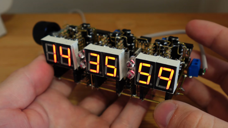 Digital clock projects have been with us since the 1970s, when affordable LEDs and integrated circuits became available. In 2026 most of them use a microcontroller, but for the AliExpress fans there’s one that goes straight back to the ’70s with a pile of logic chips. You can make it on the supplied PCBs, but that wasn’t for [ALTco]. Instead, he made the circuit in free form, using six metres of brass wire.