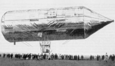 Schwartz’s unsuccessful airship, shortly before its crash.