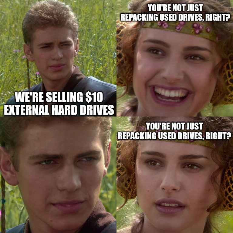 Or at least, that’s what I assumed. After all, surely nobody would have the audacity to take a take a bunch of ancient used hard drives and repackage them as new products…right?