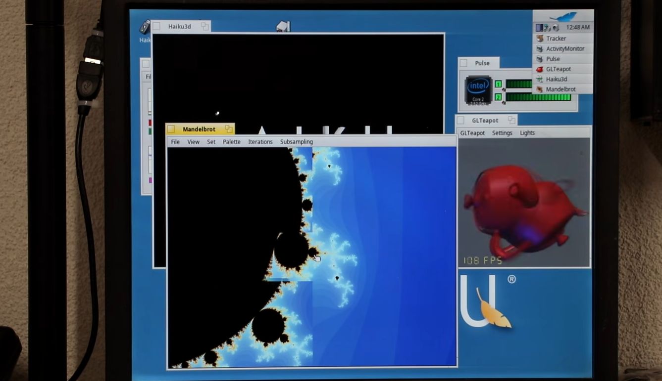 One of the main issues with these Mac systems is that they use EFI for the BIOS, so you’re condemned to either take your chances with the always glitchy CSM ‘classical BIOS’ mode, or to make Haiku and EFI get along. While for the 64-bit version of Haiku this wasn’t too much of a struggle, the 32-bit version ran into the problem that the 64-bit EFI BIOS really doesn’t like 32-bit software. After a while the 32-bit version of Haiku was thus abandoned for a later revisit.